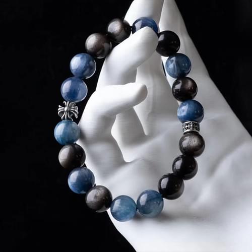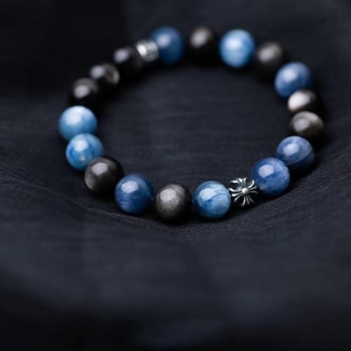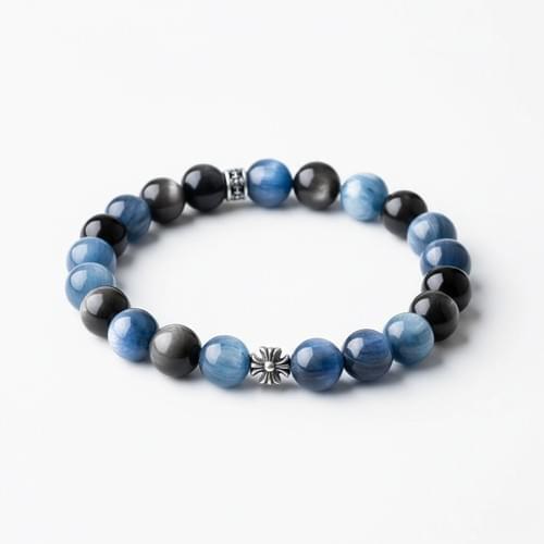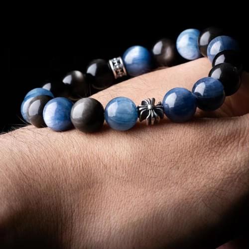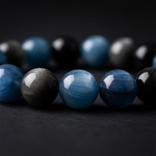 ZenithVeil Kyanite & Silver Obsidian Energy Bracelet – Balance, Protection & Inner Strength-10mm